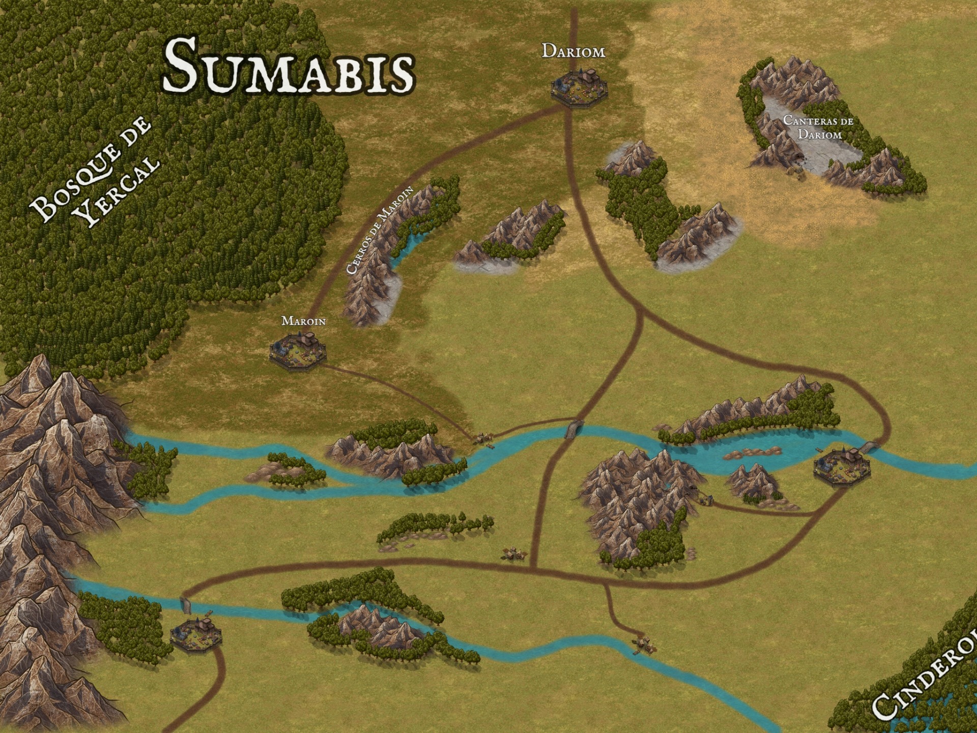 Sumabis. Fuera de los muros de la capital, asentado principalmente en el sur, el bosque de solarin es el dominio de los elfos Telluria, principales aliados del reino humano. Un místico pueblo que permite acceso a su territorio en raras ocasiones, pero que en contrapunto, está muy presente y dispuesto en el resto del continente.